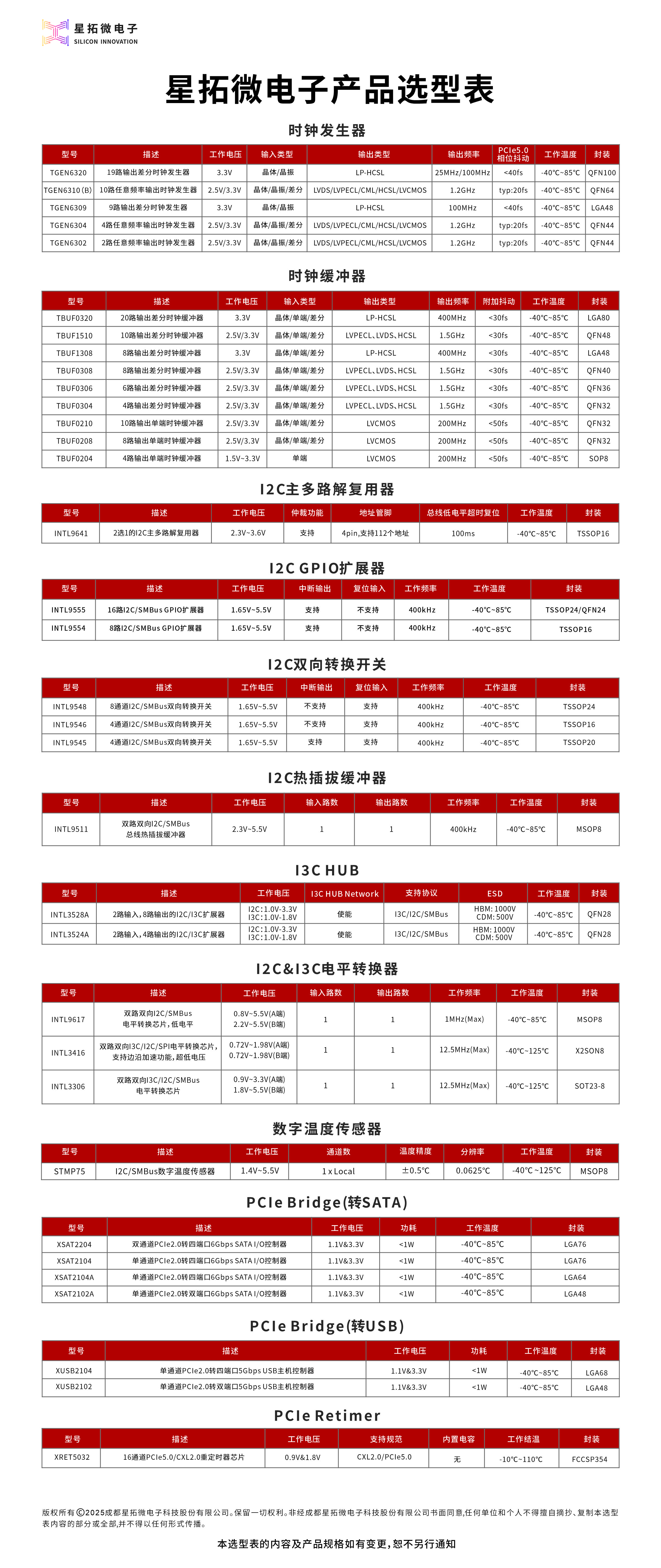 INTL9548 1.65~5.5V 1 8 不支持 支持 400KHz -40℃~85℃ TSSOP24